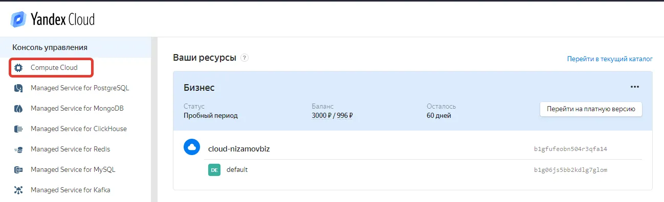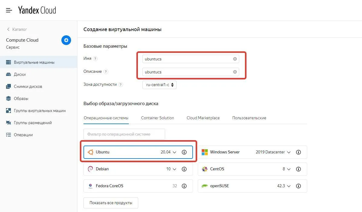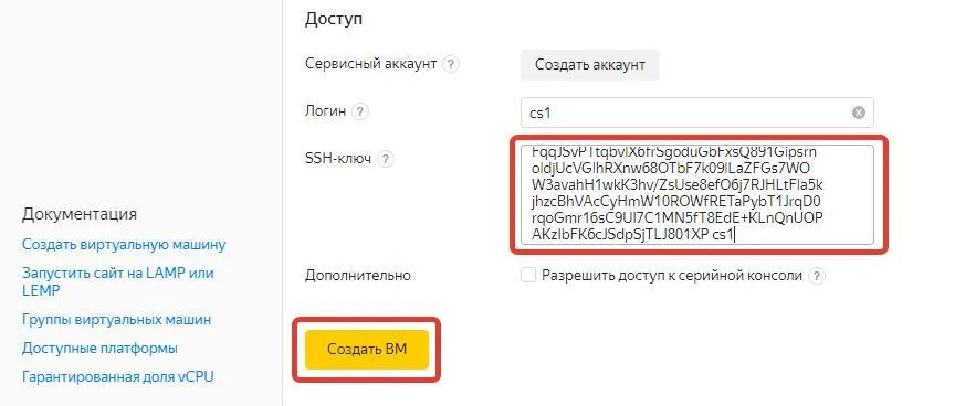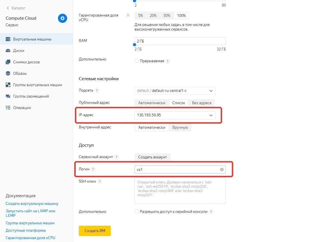 Создаем виртуальную машину в Yandex.cloud