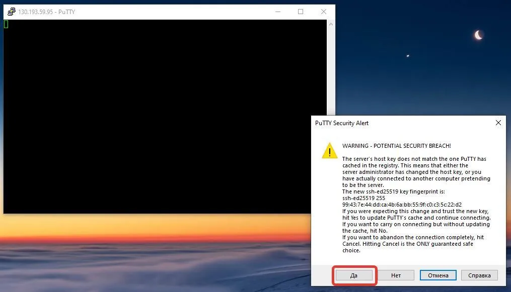 При первом подключении выдаст предупреждение. Нажимаем Да и продолжаем.